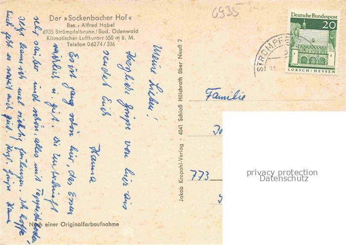 74047562 alte Postkarte Struempfelbrunn Waldbrunn Der Sockenbacher Hof postalisch gelaufen Erhaltung siehe scans [WerneD78] KatCode: 11110008225118
