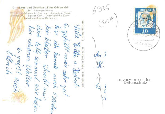 74005959 alte Postkarte Struempfelbrunn Waldbrunn Gasthaus und Pension Zum Odenwald Schankraum Speisesaal Gaestehaus postalisch gelaufen Erhaltung siehe scans [WerneD78] KatCode: 11110008225118