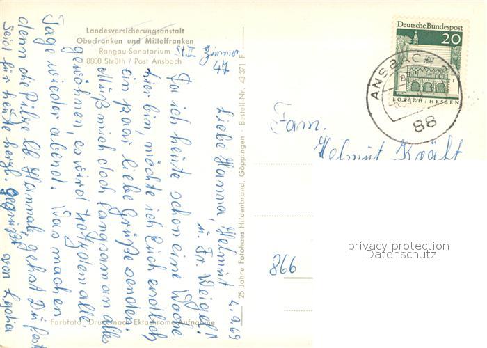 73671321 alte Postkarte Strueth Mittelfranken LVA Ober und Mittelfranken Rangau Sanatorium postalisch gelaufen Erhaltung siehe scans [WerneD78] KatCode: 11110009561000