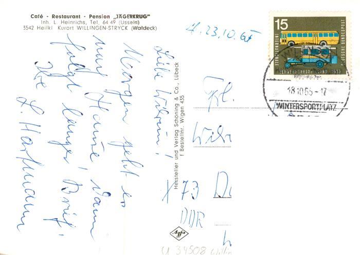73915406 alte Postkarte Stryck Cafe Restaurant Pension Jaegerkrug Gastraeume Terrasse postalisch gelaufen Erhaltung siehe scans [FriedD77] KatCode: 11110006635022