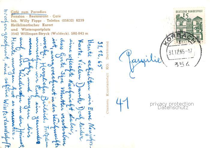 73813453 alte Postkarte Stryck Cafe zum Paradies postalisch gelaufen Erhaltung siehe scans [WerneD78] KatCode: 11110006635022