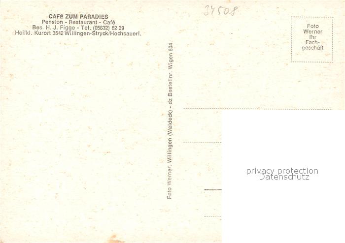 73568887 Stryck Cafe zum Paradies postalisch nicht gelaufen Erhaltung siehe scans [PaolaD17] KatCode: 11110006635022
