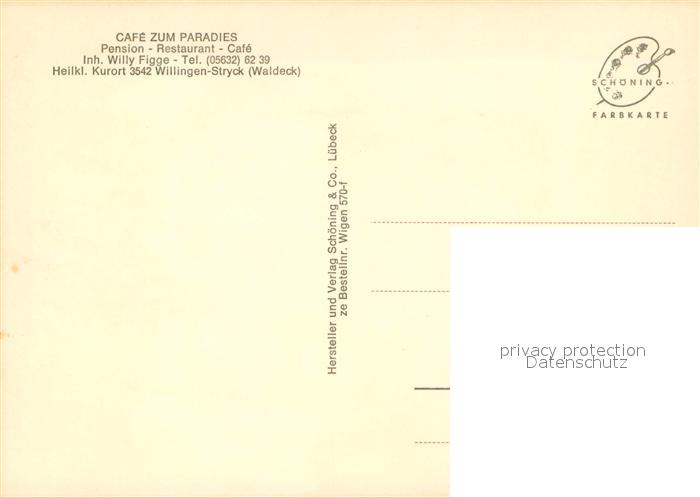 73651714 Stryck Cafe zum Paradies Terrasse postalisch nicht gelaufen Erhaltung siehe scans [FriedD77] KatCode: 11110006635022