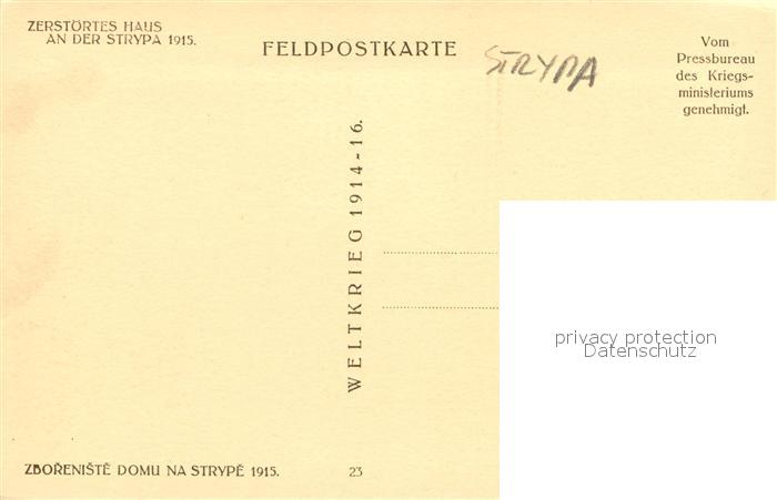 Strypa WK1 Zerstoertes Haus an der Strypa postalisch nicht gelaufen Erhaltung siehe scans [WerneD78]