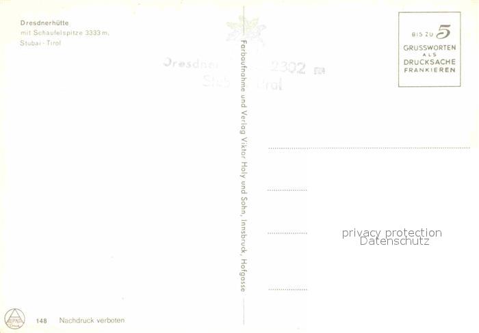 72849448 Stubaier Alpen Dresdner Huette postalisch nicht gelaufen Erhaltung siehe scans [KathaD81] KatCode: 11390332070334