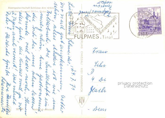 72906939 alte Postkarte Stubaier Alpen Gasthaus Schlicker-Alm postalisch gelaufen Erhaltung siehe scans [LiesaD40] KatCode: 11390332070334
