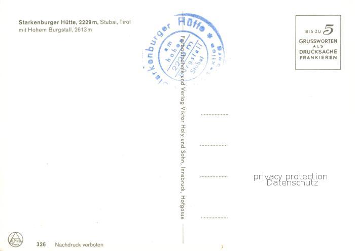 73166640 Stubaier Alpen Starkenburger Huette mit Hohem Burgstall postalisch nicht gelaufen Erhaltung siehe scans [LiesaD40] KatCode: 11390332070334