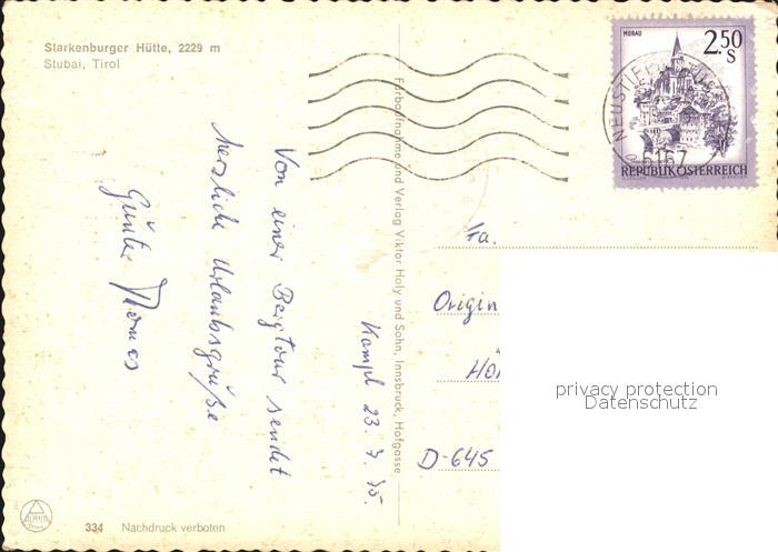 72455690 alte Postkarte Stubaier Alpen Starkenburger Huette postalisch gelaufen Erhaltung siehe scans KatCode: 11390332070334