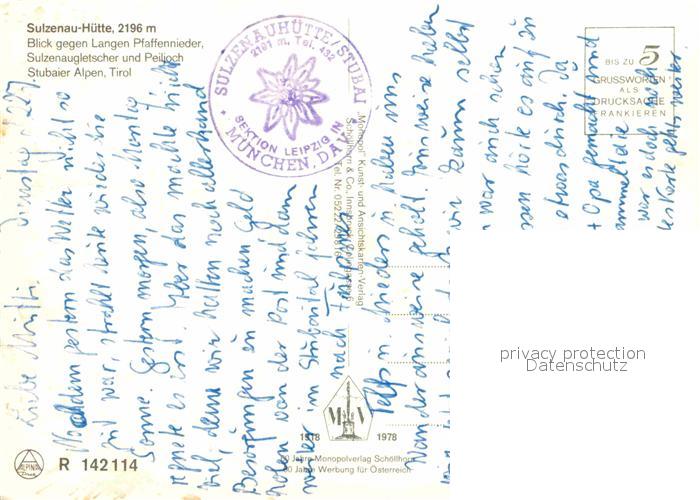 72884090 alte Postkarte Stubaier Alpen Sulzenau Huette postalisch gelaufen Erhaltung siehe scans [WerneD78] KatCode: 11390332070334