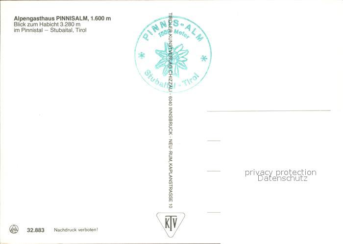 72495926 Stubaital Alpengasthaus Pinnisalm postalisch nicht gelaufen Erhaltung siehe scans KatCode: 11390332070334