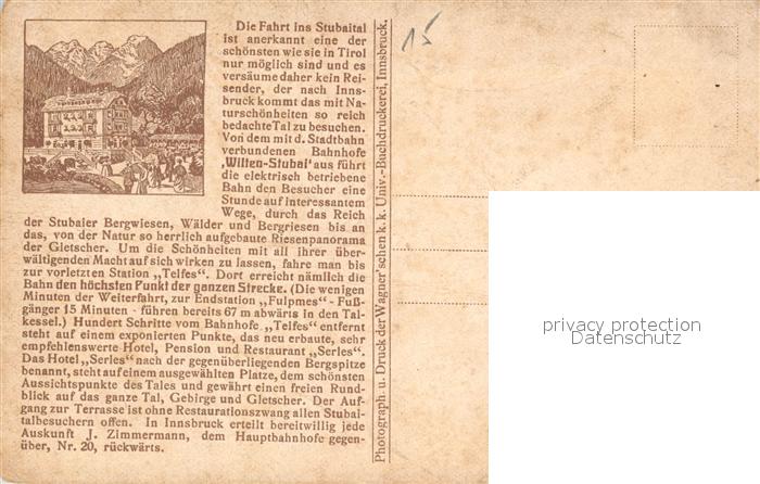 73374798 Stubaital Panoramakarte Chronik postalisch nicht gelaufen Erhaltung siehe scans [KathaD81] KatCode: 11390332070334