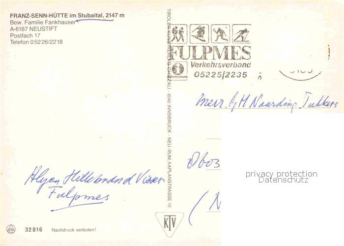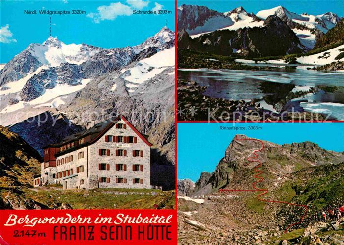 72897834 alte Postkarte Stubaital Wildgratspitze Franz Senn Huette Rinnenspitze postalisch gelaufen Erhaltung siehe scans [FriedD77] KatCode: 11390332070334