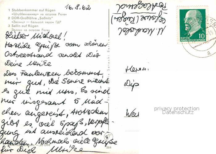 72646125 alte Postkarte Stubbenkammer Ruegen Kreidefelsen Faehre Sellin Seebruecke Strand postalisch gelaufen Erhaltung siehe scans [FriedD77] KatCode: 11110013061035