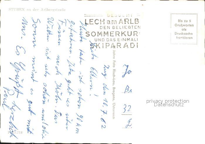 72603547 alte Postkarte Stuben Vorarlberg Arlbergstrasse postalisch gelaufen Erhaltung siehe scans [FriedD77] KatCode: 11390341080112