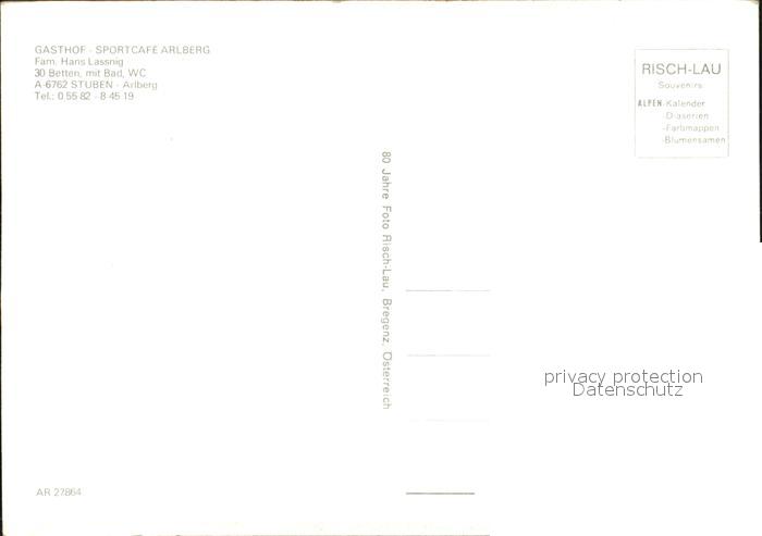 72430710 Stuben Vorarlberg Gasthof Sportcafe Arlberg Wintersportplatz Alpen postalisch nicht gelaufen Erhaltung siehe scans KatCode: 11390341080112