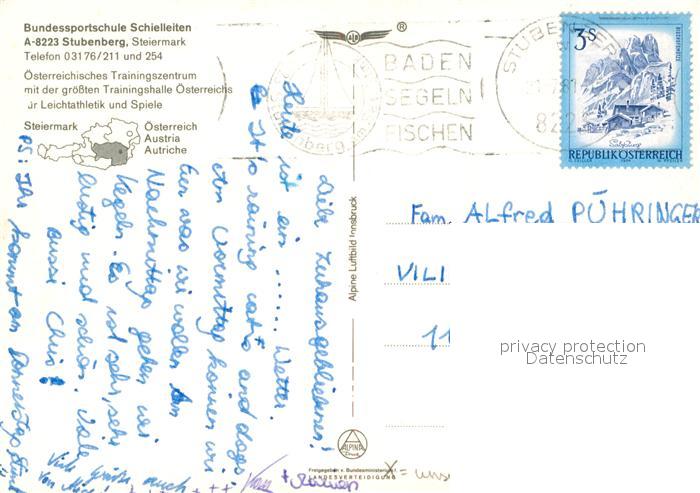 72949456 alte Postkarte Stubenberg Steiermark Fliegeraufnahme Bundessportschule Schielleiten postalisch gelaufen Erhaltung siehe scans [NatalD47] KatCode: 11390224060743