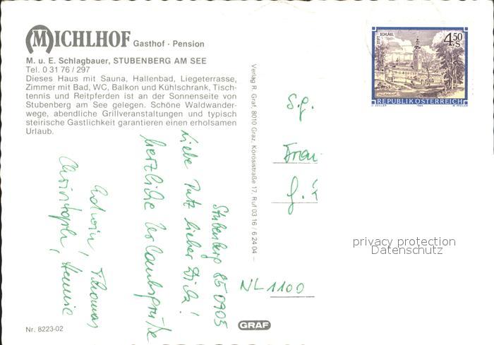 72238833 alte Postkarte Stubenberg Steiermark Gasthof Pension Michelhof postalisch gelaufen Erhaltung siehe scans KatCode: 11390224060743