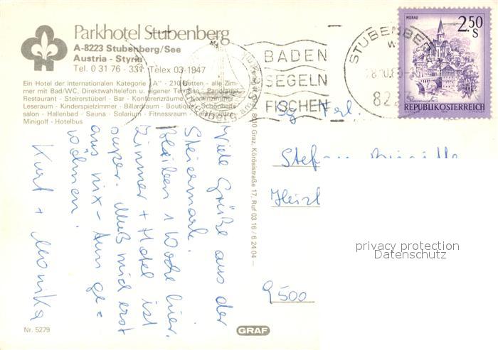 73177103 alte Postkarte Stubenberg Steiermark Parkhotel Stubenberg postalisch gelaufen Erhaltung siehe scans [NatalD47] KatCode: 11390224060743