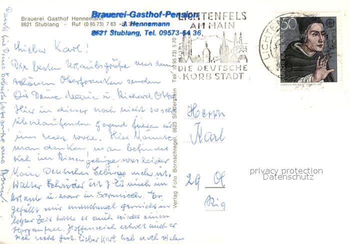 73019159 alte Postkarte Stublang Brauerei Gasthof Hennemann Brunnen postalisch gelaufen Erhaltung siehe scans [WerneD78] KatCode: 11110009478165
