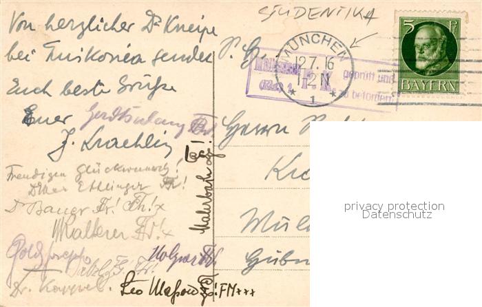 33577518 alte Postkarte Studentika M?nchen postalisch gelaufen Erhaltung siehe scans [PaolaD17] KatCode: 22220000001200