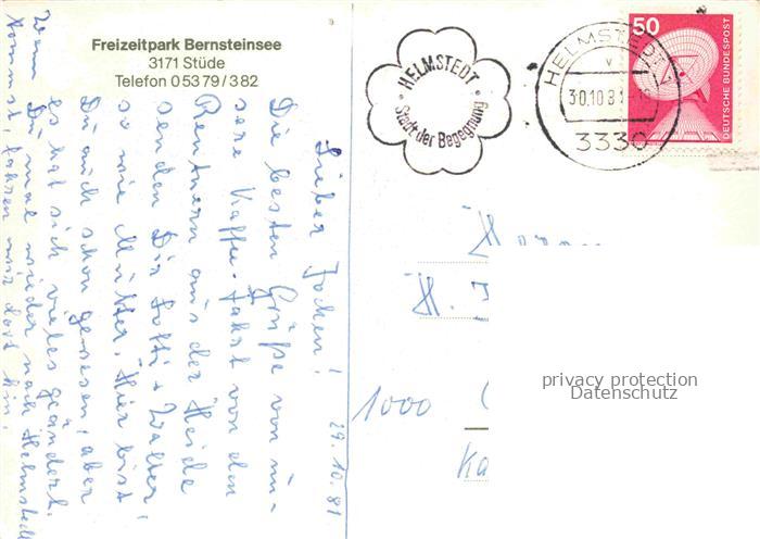 74043401 alte Postkarte Stuede Sassenburg Gifhorn Niedersachsen Freizeitpark Bernsteinsee Campingplatz Bungalow Gaststaette postalisch gelaufen Erhaltung siehe scans [FriedD77] KatCode: 11110003151025