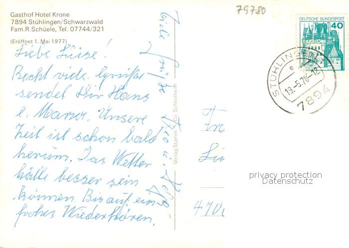 73085780 alte Postkarte Stuehlingen Gasthof Hotel Krone postalisch gelaufen Erhaltung siehe scans [FriedD77] KatCode: 11110008337106