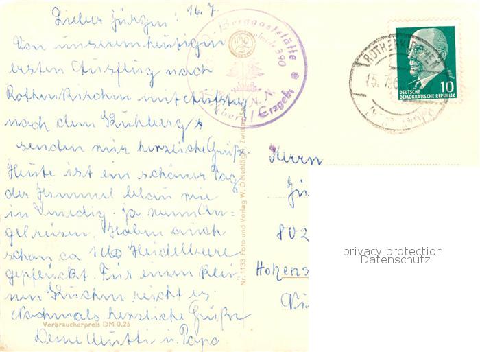 73801766 alte Postkarte Stuetzengruen Kuhberg Aussichtsturm Oberstuetzengruen Blick zum Auersberg postalisch gelaufen Erhaltung siehe scans [WerneD78] KatCode: 11110014191320