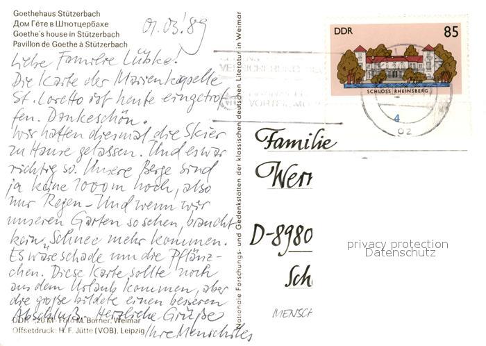 73101121 alte Postkarte Stuetzerbach Goethehaus postalisch gelaufen Erhaltung siehe scans [WerneD78] KatCode: 11110016070049
