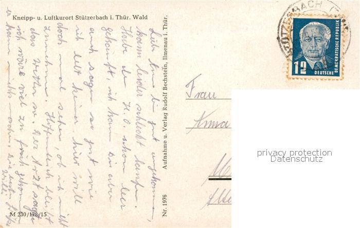 73080409 alte Postkarte Stuetzerbach Panorama Kneipp Luftkurort im Thueringer Wald postalisch gelaufen Erhaltung siehe scans [FriedD77] KatCode: 11110016070049
