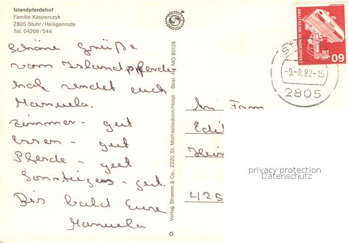 73642225 alte Postkarte Stuhr Islandpferdehof Bettenlager Gastraum Reiter postalisch gelaufen Erhaltung siehe scans [WerneD78] KatCode: 11110003251037