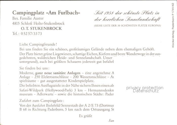 72269463 Stukenbrock Camping am Furlbach postalisch nicht gelaufen Werbekarte (keine Postkarte) Erhaltung siehe scans KatCode: 11110005754036