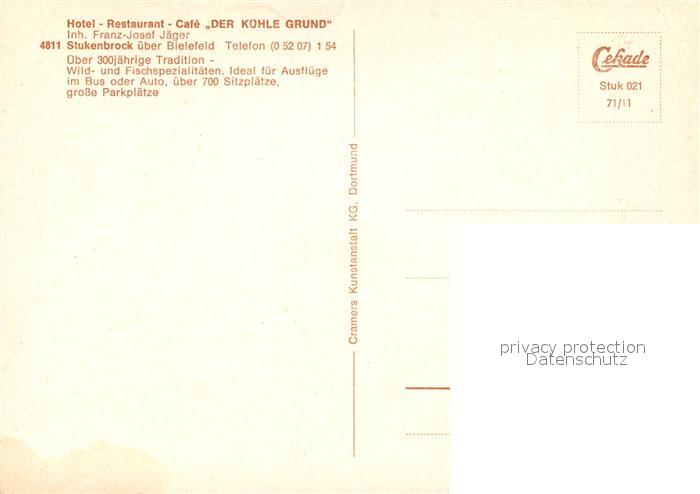 73128499 Stukenbrock Hotel Der Kuehle Grund Safari-Park Forellenzucht postalisch nicht gelaufen Erhaltung siehe scans [NatalD47] KatCode: 11110005754036
