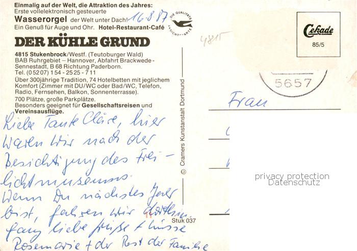 73858774 alte Postkarte Stukenbrock Hotel Restaurant Cafe Der kuehle Grund Wasserorgel postalisch gelaufen Erhaltung siehe scans [FriedD77] KatCode: 11110005754036
