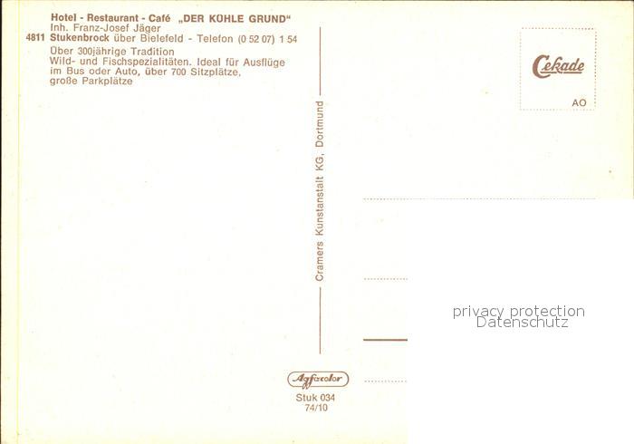 Stukenbrock Hotel Restaurant Cafe Der Kuehle Grund postalisch nicht gelaufen Erhaltung siehe scans
