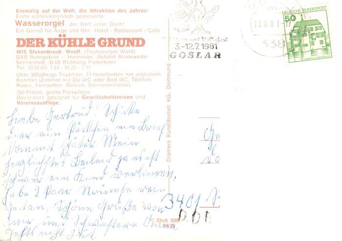 73881335 alte Postkarte Stukenbrock Restaurant Der Kuehle Grund Terrassen Gastraum postalisch gelaufen Erhaltung siehe scans [WerneD78] KatCode: 11110005754036