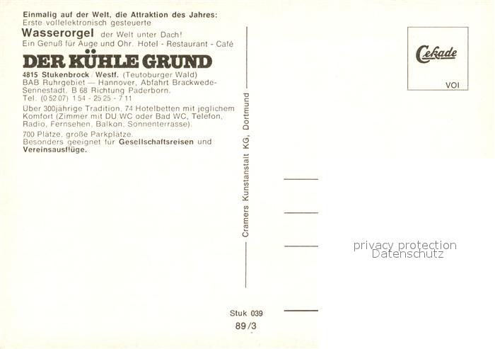 73159140 Stukenbrock Restaurant Der Kuehle Grund Wasserorgel postalisch nicht gelaufen Erhaltung siehe scans [WerneD78] KatCode: 11110005754036