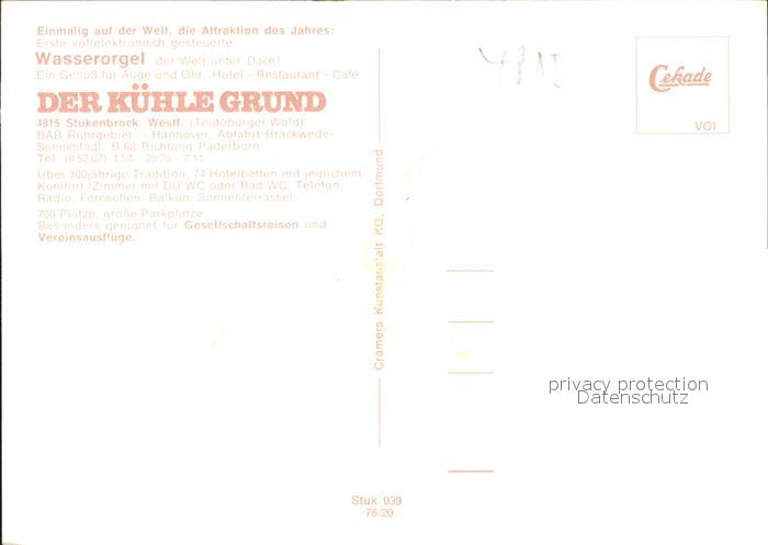 72063106 Stukenbrock Wasserorgel Der kuehle Grund Restaurant postalisch nicht gelaufen Erhaltung siehe scans KatCode: 11110005754036