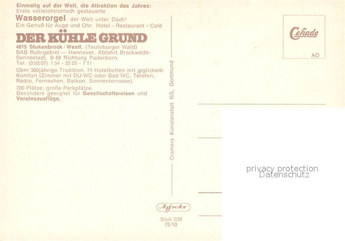 73169536 Stukenbrock Wasserorgel Hotel Restaurant Der Kuehle Grund postalisch nicht gelaufen Erhaltung siehe scans [FriedD77] KatCode: 11110005754036