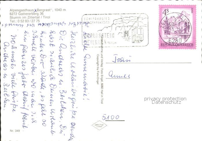 72052654 alte Postkarte Stumm Zillertal Alpengasthaus Bergrast postalisch gelaufen Erhaltung siehe scans KatCode: 11390335070931