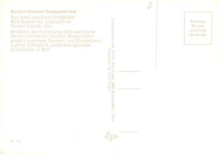 73937416 Stumm Zillertal AT Gasthof Pension Rissbacher Hof Ortspartien Skihang postalisch nicht gelaufen Erhaltung siehe scans [WerneD78] KatCode: 11390335070931