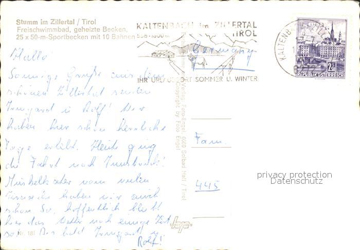 72246863 alte Postkarte Stumm Zillertal Freibad Durchblick vom Waldrand postalisch gelaufen Erhaltung siehe scans KatCode: 11390335070931