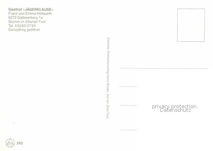 12759002 Stumm Zillertal Gasthof Jaegerklause postalisch nicht gelaufen Erhaltung siehe scans [AndreD76] KatCode: 11390335070931