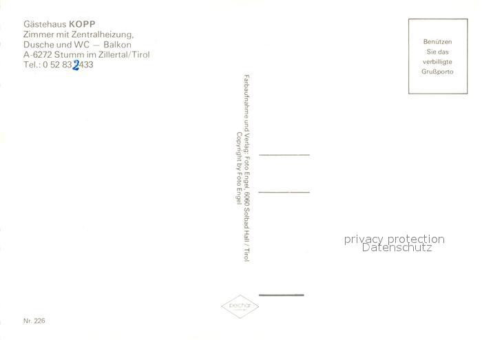 73588647 Stumm Zillertal G?stehaus Kopp postalisch nicht gelaufen Erhaltung siehe scans [PaolaD17] KatCode: 11390335070931