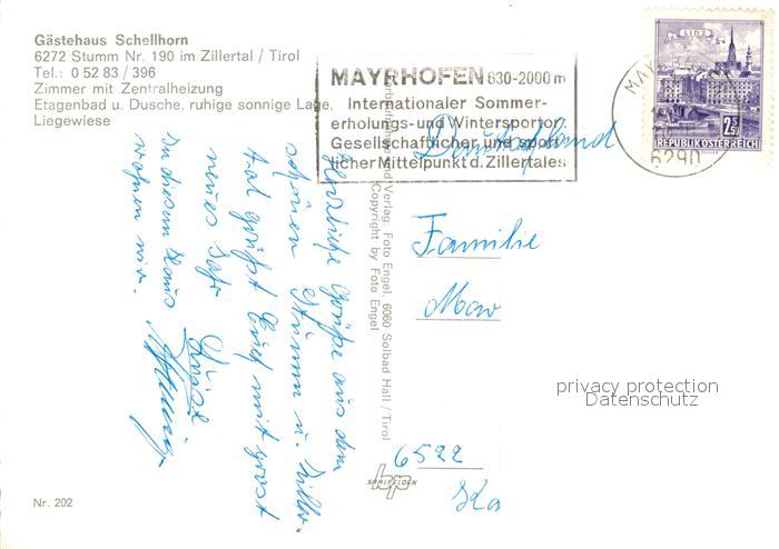 13588558 alte Postkarte Stumm Zillertal G?stehaus Schellhorn postalisch gelaufen Erhaltung siehe scans [LiesaD40] KatCode: 11390335070931