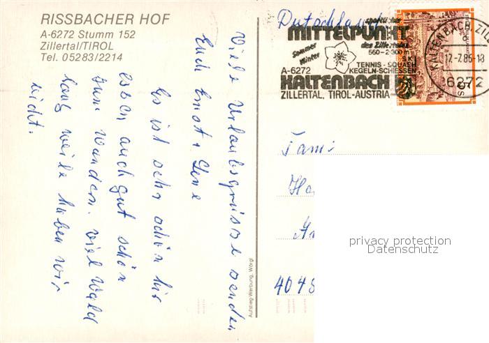 73591006 alte Postkarte Stumm Zillertal Hotel GAsthof Rissbacherhof postalisch gelaufen Erhaltung siehe scans [KathaD81] KatCode: 11390335070931