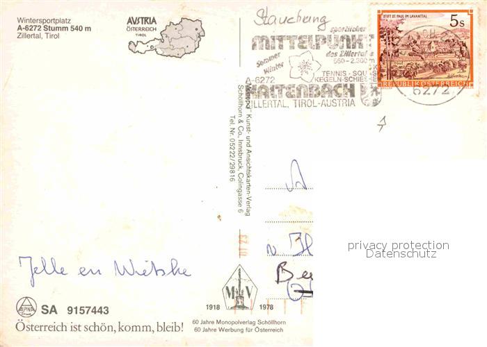 72898113 alte Postkarte Stumm Zillertal Ortsmotiv postalisch gelaufen Erhaltung siehe scans [FriedD77] KatCode: 11390335070931