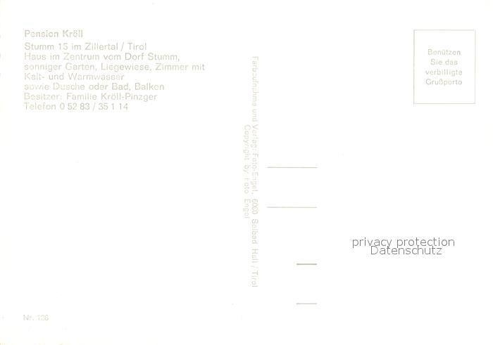 73588648 Stumm Zillertal Pension Kr?ll postalisch nicht gelaufen Erhaltung siehe scans [PaolaD17] KatCode: 11390335070931
