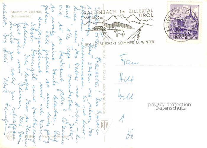 72915613 alte Postkarte Stumm Zillertal Schwimmbad postalisch gelaufen Erhaltung siehe scans [NatalD47] KatCode: 11390335070931