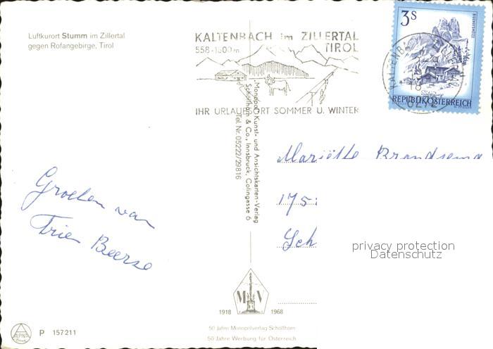 72438199 alte Postkarte Stumm Zillertal postalisch gelaufen Erhaltung siehe scans KatCode: 11390335070931
