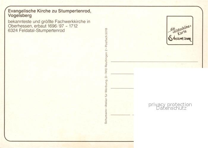 73226283 Stumpertenrod Evangelische Kirche Vogelsberg Fachwerkkirche 17. Jhdt. postalisch nicht gelaufen Erhaltung siehe scans [FriedD77] KatCode: 11110006535003